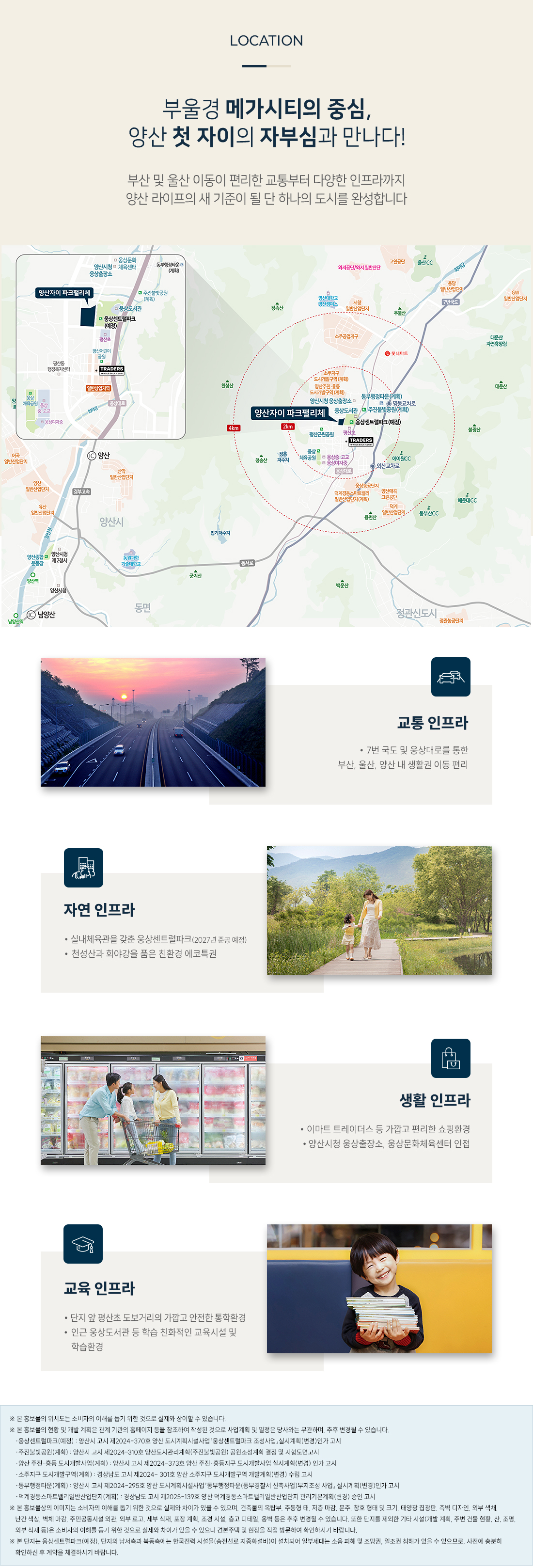 양산자이 파크팰리체 입지환경 - 부울경 메가시티의 중심, 교통 인프라, 자연 인프라, 생활 인프라, 교육 인프라 안내